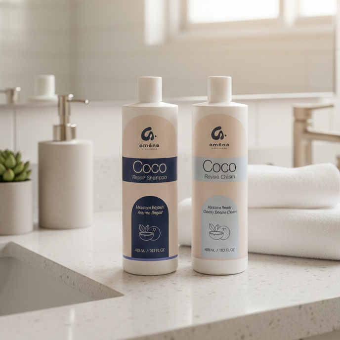 Shampoo Coco Repair: limpia a profundidad sin sulfatos fuertes, cuidando la barrera del cuero cabelludo y evitando la resequedad.